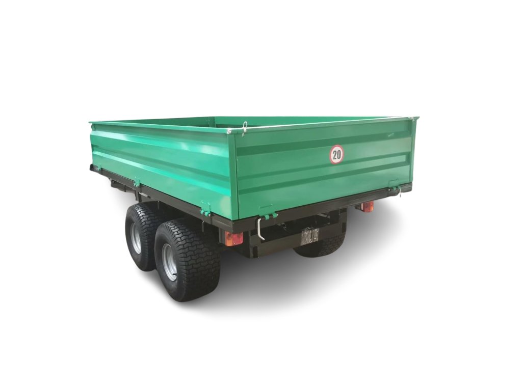 Díky dvěma nápravám (4 kola) nabízí přívěs výbornou stabilitu, klidný chod v terénu a bezpečné sklápění i při plném zatížení. Je ideální volbou pro náročnější hobby i profi uživatele, malé farmáře i komunální nasazení. Tento zemědělský přívěs je plně kompatibilní s malotraktory a traktory Tauros. Je rovněž vhodným příslušenstvím pro malotraktory jiných značek od výkonu 25 koní.
