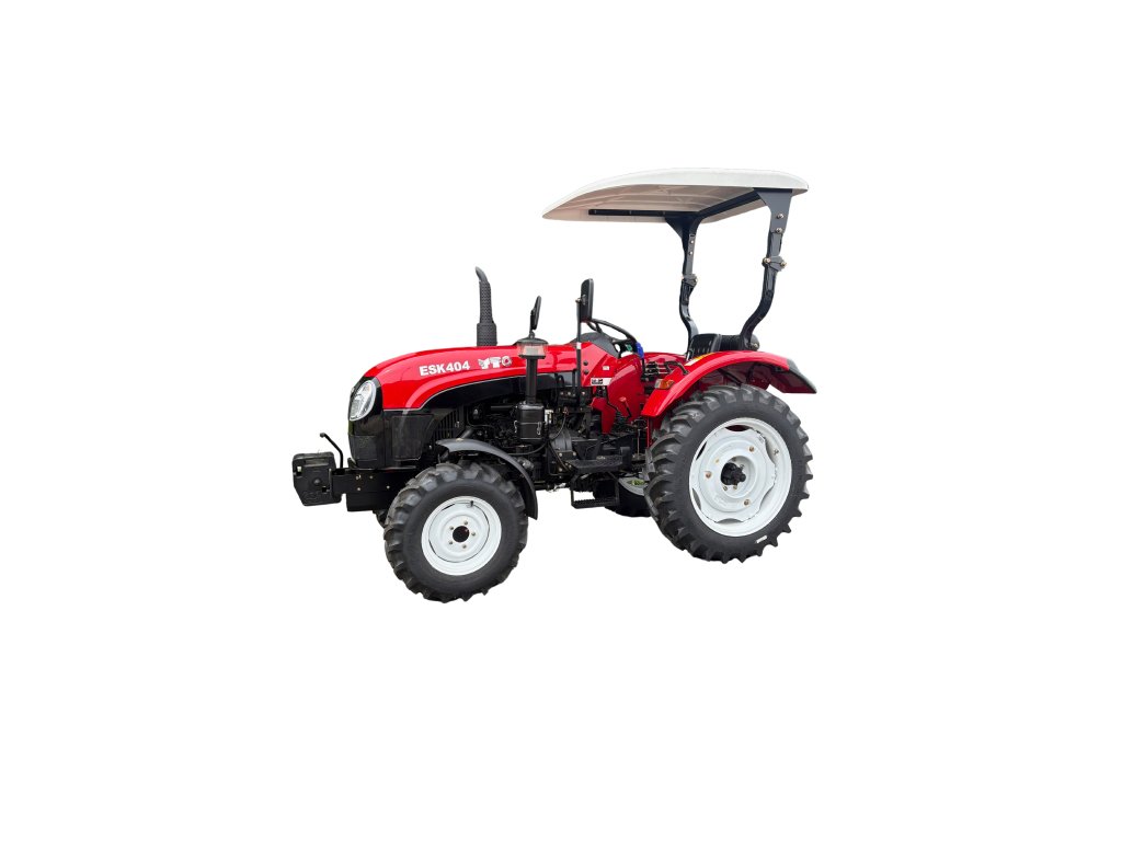 YTO ESK404 je malotraktor 4x4 s možností vypínání předního náhonu. Tento malotraktor je poháněn čtyřválcovým motorem YTO YND490T. Díky jednoduché mechanické konstrukci nabízí nízké provozní náklady, snadnou údržbu a dlouhou životnost. Základní konfigurace malotraktoru zahrnuje převodovku 8 rychlostí vpřed a 2 vzad (8F+2R), v případě provedení s čelním nakladačem je osazen reverzní převodovkou 8F+8R shuttle pro snadné manévrování. Traktor je vybaven kabinou s topením nebo otevřeným ROPS rámem s přístřeškem, výkonnou hydraulikou se dvěma okruhy, vývodovou hřídelí PTO 540/1000 ot./min a vzduchovými brzdami. Jedná se o ideální stroj pro ty, kteří hledají maximální užitnou hodnotu bez zbytečné složitosti. Silnou stránkou modelu ESK404 je i všestrannost a připravenost pro práci s příslušenstvím – od sečení a nakládání po zimní údržbu.