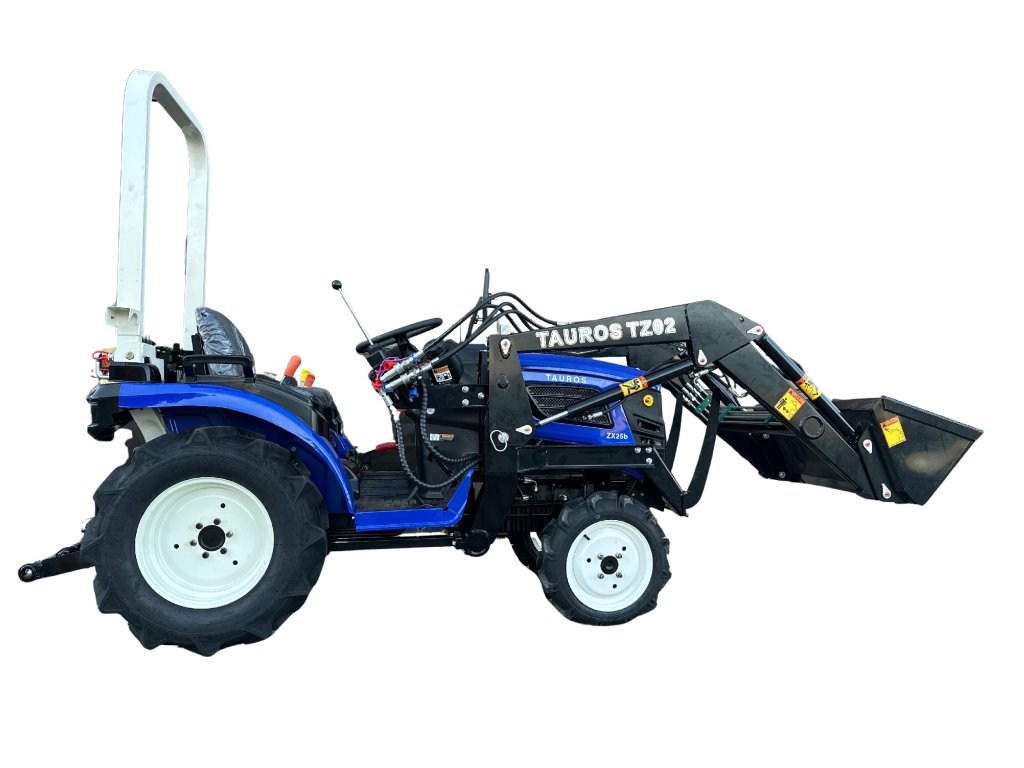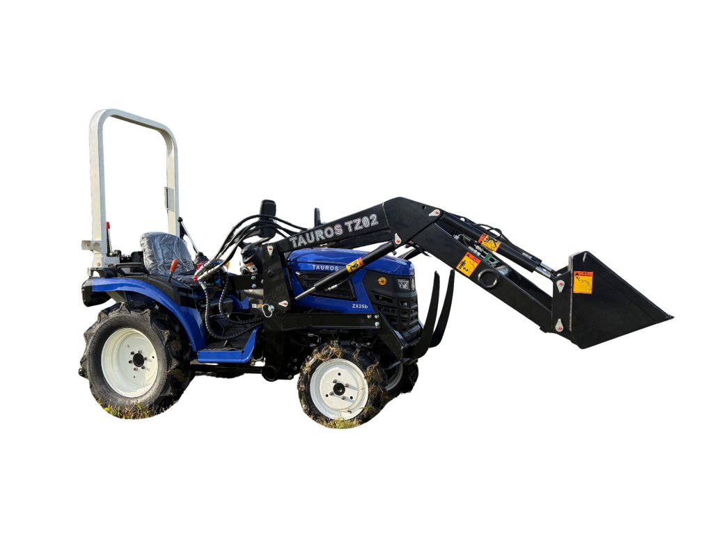 Malotraktory řady Tauros ZX25 nabízí kvalitní zpracování, kompaktnost a skvělou výbavu s možností přihlášení na SPZ. Jsou dostupné rovněž s čelním nakladačem TZ02, který výrazně rozšiřuje jeho možnosti při manipulaci s materiálem – umožňuje snadné nakládání, vykládání a převoz zeminy, štěrku, kompostu, hnoje či sypkých hmot, stejně jako práci s paletami, odklízení sněhu nebo údržbu zpevněných ploch a obecních prostor.